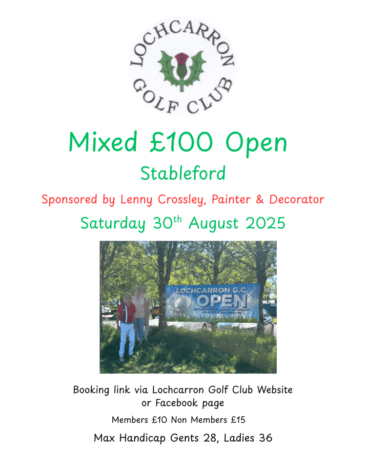 Please click on the link below to check the tee-times. The document is interactive so should always be up to date. If your chosen tee-time is available please enter your details. Any issues contact the Secretary on info@lochcarrongolfclub.co.uk